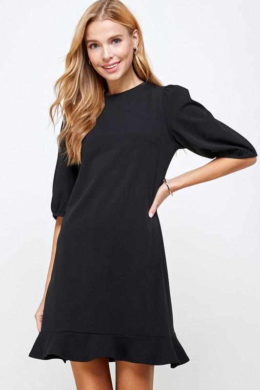 SOLID PUFF SLEEVE DREES