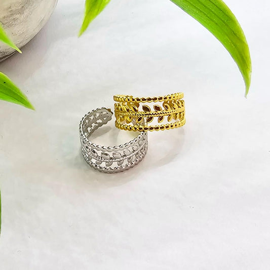 Sortija SS Hojas Ajustable