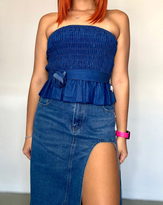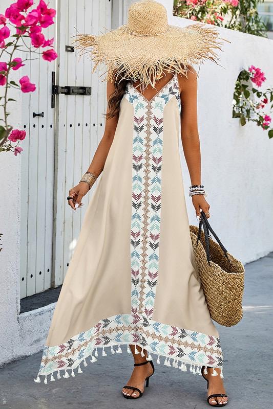 VESTIDO LARGO CON BORDADO Y PUNTOS SUIZOS