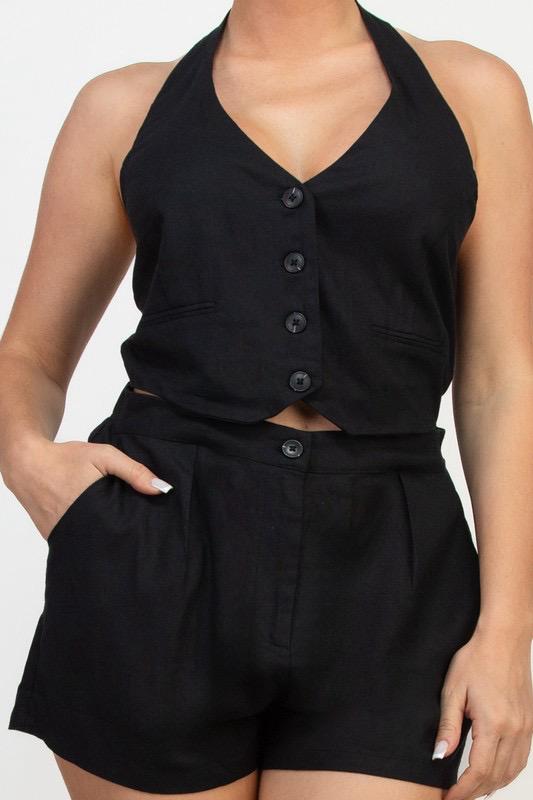 HALTER LINEN HYBRID FASHION ROMPER